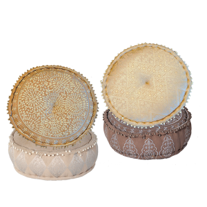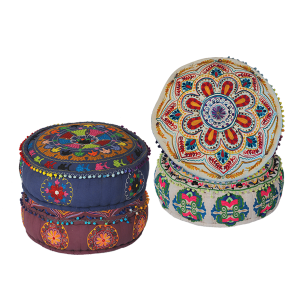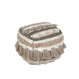 פוף בוהמי שמנת ועיטורים אדום שחור