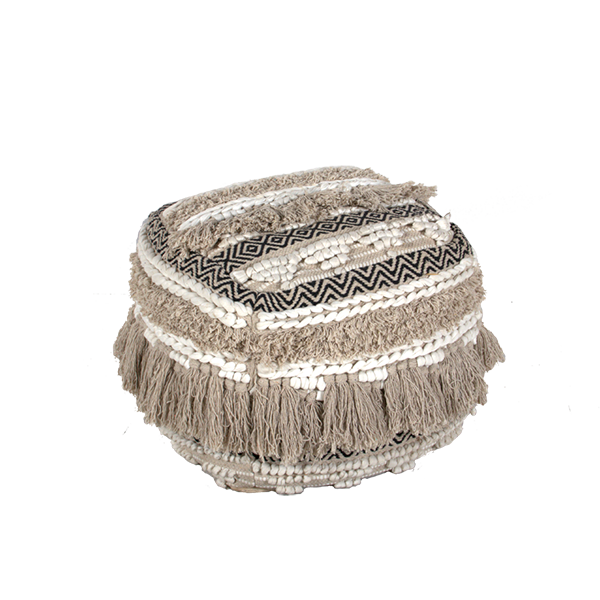 פוף בוהמי שחור לבן עם פרנזים